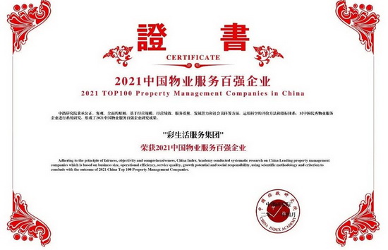 彩生活物業(yè)獲“2021中國物業(yè)服務(wù)百強服務(wù)質(zhì)量領(lǐng)先企業(yè)”;萬象美物業(yè)獲“2021中國商業(yè)物業(yè)管理優(yōu)秀企業(yè)”第一名;開元國際物業(yè)獲“2021中國高端物業(yè)服務(wù)領(lǐng)先企業(yè)”、“2021中國特色物業(yè)服務(wù)領(lǐng)先企業(yè)-高端住宅”、“2021中國物業(yè)服務(wù)百強滿意度領(lǐng)先企業(yè)”。