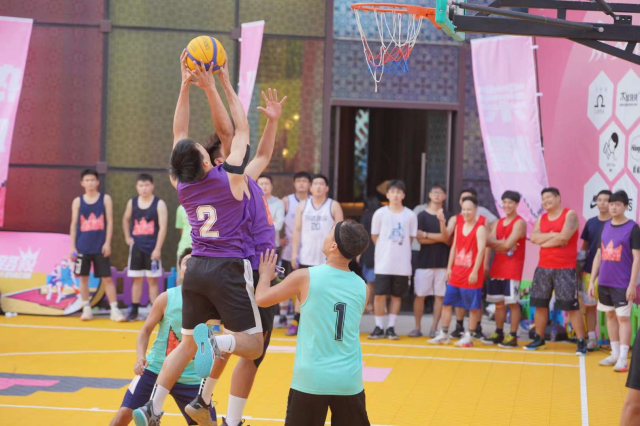 深圳花樣年·好時(shí)光:項(xiàng)目營(yíng)銷中心戶外廣場(chǎng)的“野路殺”籃球場(chǎng)正式落成,吸引一眾周邊居民及業(yè)主客戶前來(lái)打球。金黃色球場(chǎng)地面采用了馬賽克風(fēng)格的懸浮地板拼貼,巨大的粉色皇冠旺盛燃動(dòng),設(shè)計(jì)靈感源于極具個(gè)性的著名街頭涂鴉藝術(shù)家巴斯奎特,一段涂鴉風(fēng)格的馬卡龍小皇冠背景圍擋將街頭籃球的“野”味點(diǎn)燃,讓人不禁想到動(dòng)漫《灌籃高手》的熱血畫面。