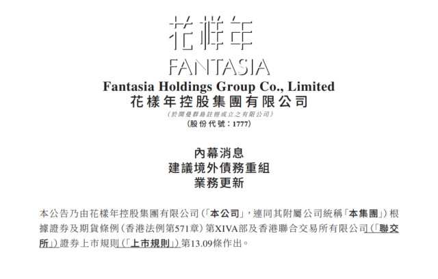 1月13日,花樣年公告已與發(fā)行本金總額為40.18億美元的若干主要債券持有人取得進展,就境外債務(wù)重組條款達成一項協(xié)議,旨在全面提升資本結(jié)構(gòu)、為各方實現(xiàn)長期價值。